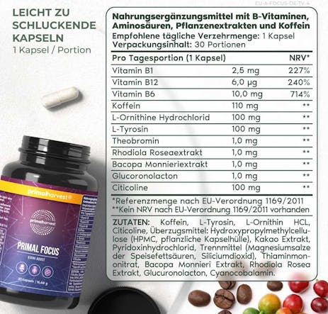 Viele Prominente wie Emma Watson, Leonardo DiCaprio und Serena Williams setzen auf Nahrungsergänzungsmittel, um ihre Konzentration zu verbessern. Primal Focus, eine kraftvolle Mischung aus natürlichen Inhaltsstoffen wie Ginkgo Biloba und Bacopa Monnieri, unterstützt die kognitive Funktion und fördert eine bessere Konzentration.