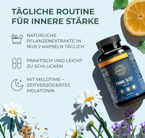 Seit ich Primal Sleep nehme, finde ich viel schneller in den Schlaf. Ich fühle mich morgens erfrischt und bereit für den Tag. Ein großartiges Produkt!